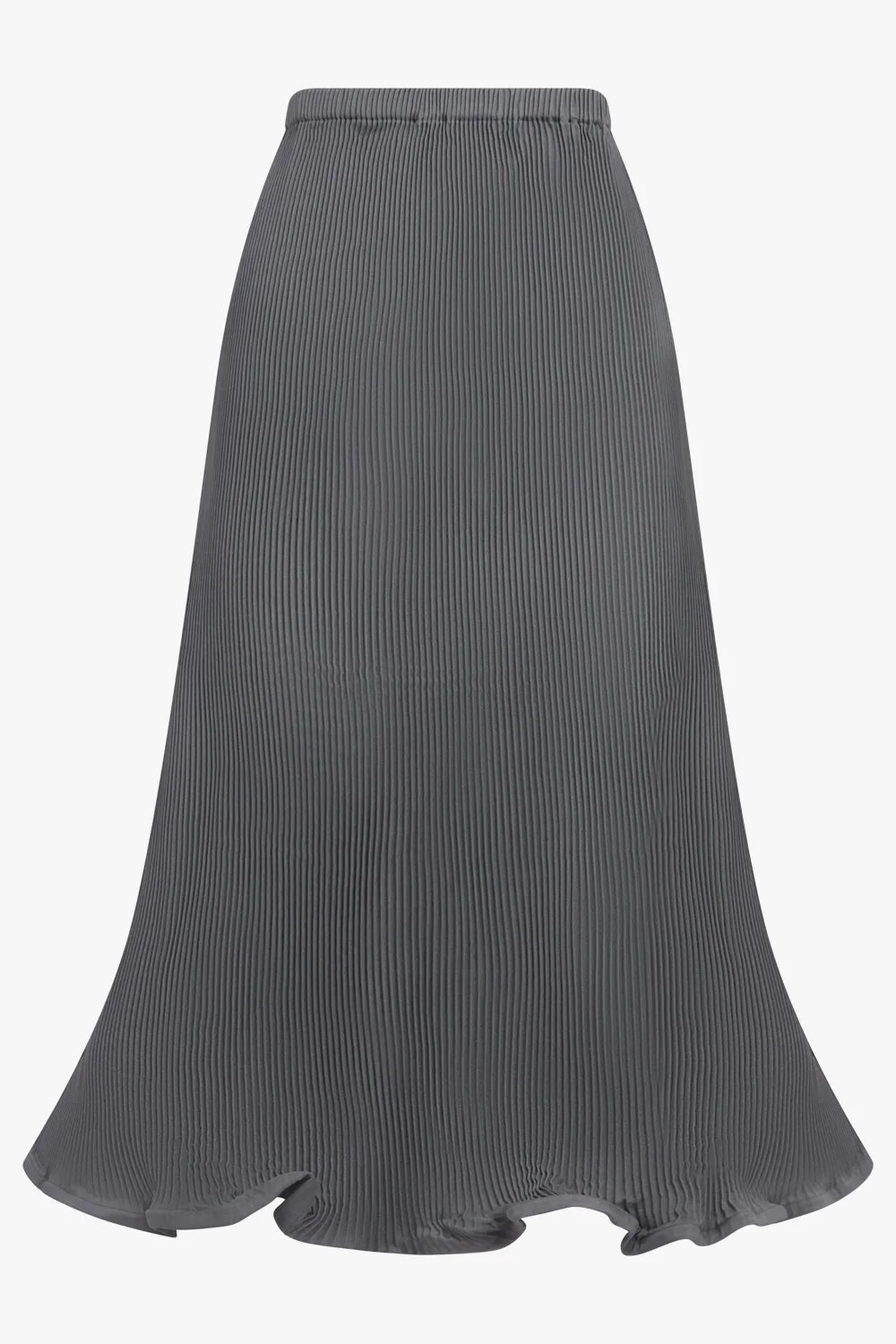 A modern reimagining of classic tailoring, the Zigzag Ripple Midi Skirt in Grey offers a sculptural silhouette with contemporary edge. Crafted from a subtly textured fabric, this midi skirt features an elastic waistband for comfortable, easy wear, and a unique bendable metal hem, allowing you to manipulate the base for customizable shapes and styling options. Its versatile design makes it a standout piece for both casual and polished ensembles. - Elastic waistband for comfort and easy fit - Bendable metal hem for adjustable shapes and versatile styling - Subtle ripple texture adds depth and visual interest - Midi length with a straight silhouette for a flattering fit - Classic grey colourway for timeless versatility Style it with the matching Zigzag L/S Ripple Top or a sleek blouse to create a coordinated, modern look. Size and Fit Tiah: Model is 178cm/5’9” and is wearing a size S Model Measurements: Bust: 86cm, Waist: 69cm, Hips 90.5cm Fits true to size