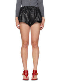 Coated acetate-blend matelasse shorts. Jacquard graphic pattern throughout. · Belt loops · Concealed drawstring at elasticized waistband · Four-pocket styling · Mock-fly Supplier color: Black Body: 51% acetate, 33% acrylic, 8% polyester, 8% nylon. Lining: 100% cotton. Made in Romania 242512F088001