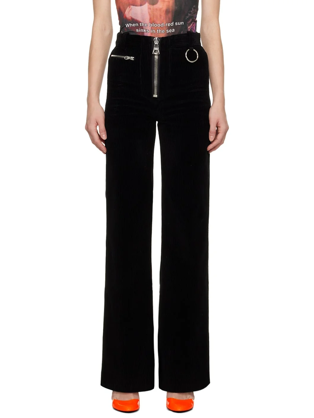 Cotton corduroy trousers. · Belt loops · Three-pocket styling · Zip-fly · O-ring at front waistband Supplier color: Black 100% cotton. Made in Italy 222512F087002