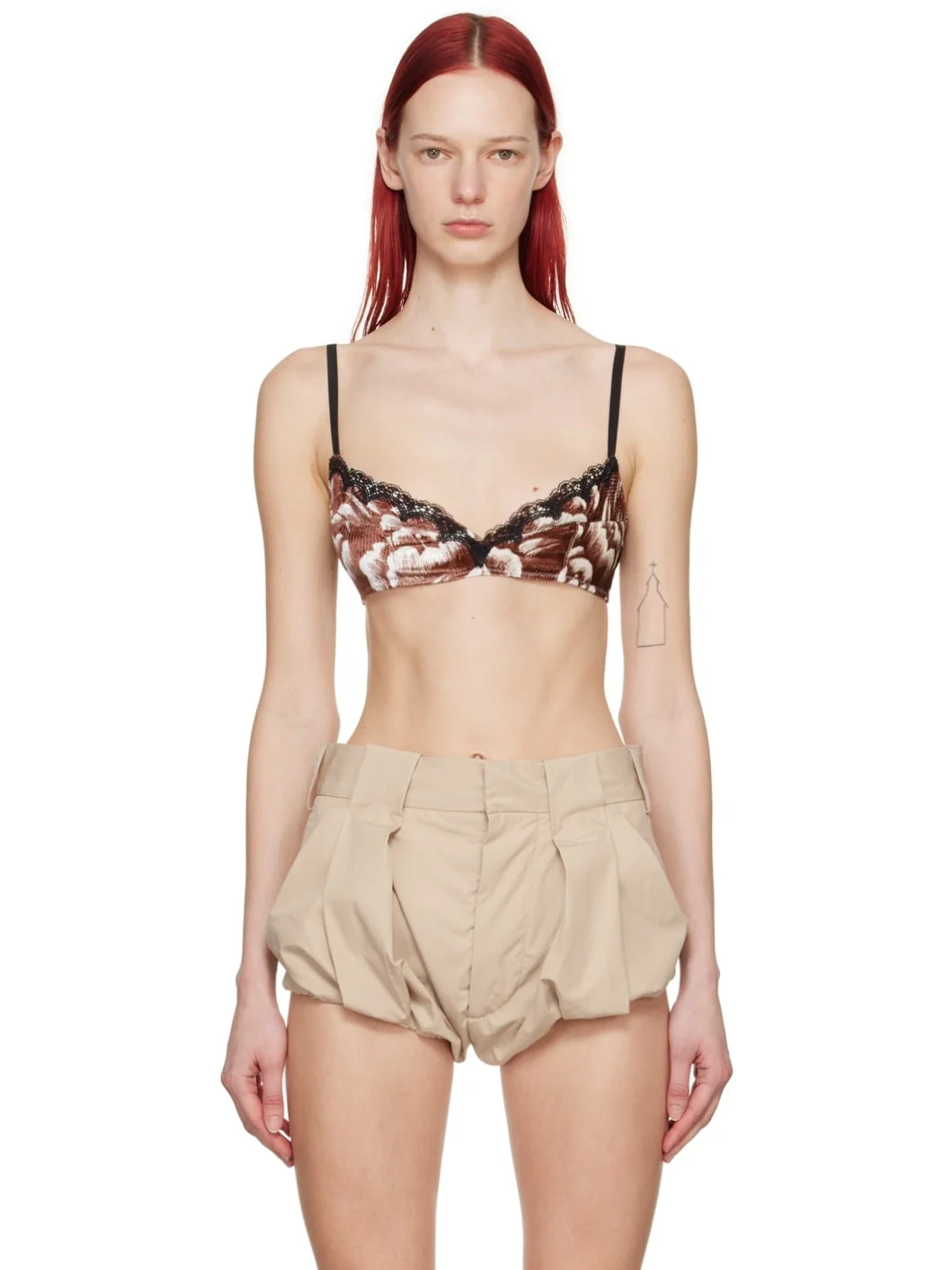 Viscose- and silk-blend velvet bra-style tank top. Jacquard floral pattern throughout. · Lace trim at plunging V-neck · Adjustable elasticized shoulder straps · Hook-eye fastening at back · Full viscose satin lining Supplier color: Lino flower brown Body: 82% viscose, 18% silk. Lining: 100% viscose. Made in Italy 241512F111002