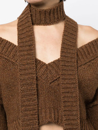 cropped V-neck halterneck jumper shetland brown wool knitted construction cropped ribbed edge V-neck halterneck tie fastening drop shoulder long sleeves straight hem Imported Composition Wool 100% SIZE & FIT Model measurements Height 5 ft 10 in(1.77 m) Bust/Chest 31.49 in(80 cm) Hips 35.43 in(90 cm) Waist 25.19 in(64 cm) FittingInformation This piece fits true to size. We recommend you get your regular size Cut for a loose fit Made with a mid-weight fabric Washing instructions Hand Wash