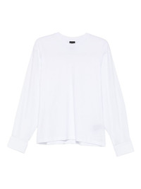 cuffed top Highlights - White - Cuffed sleeves - Buttoned cuffs - Long sleeves - Round neck Imported Composition Cotton 100%, Polyester 100% Washing instructions Machine Wash