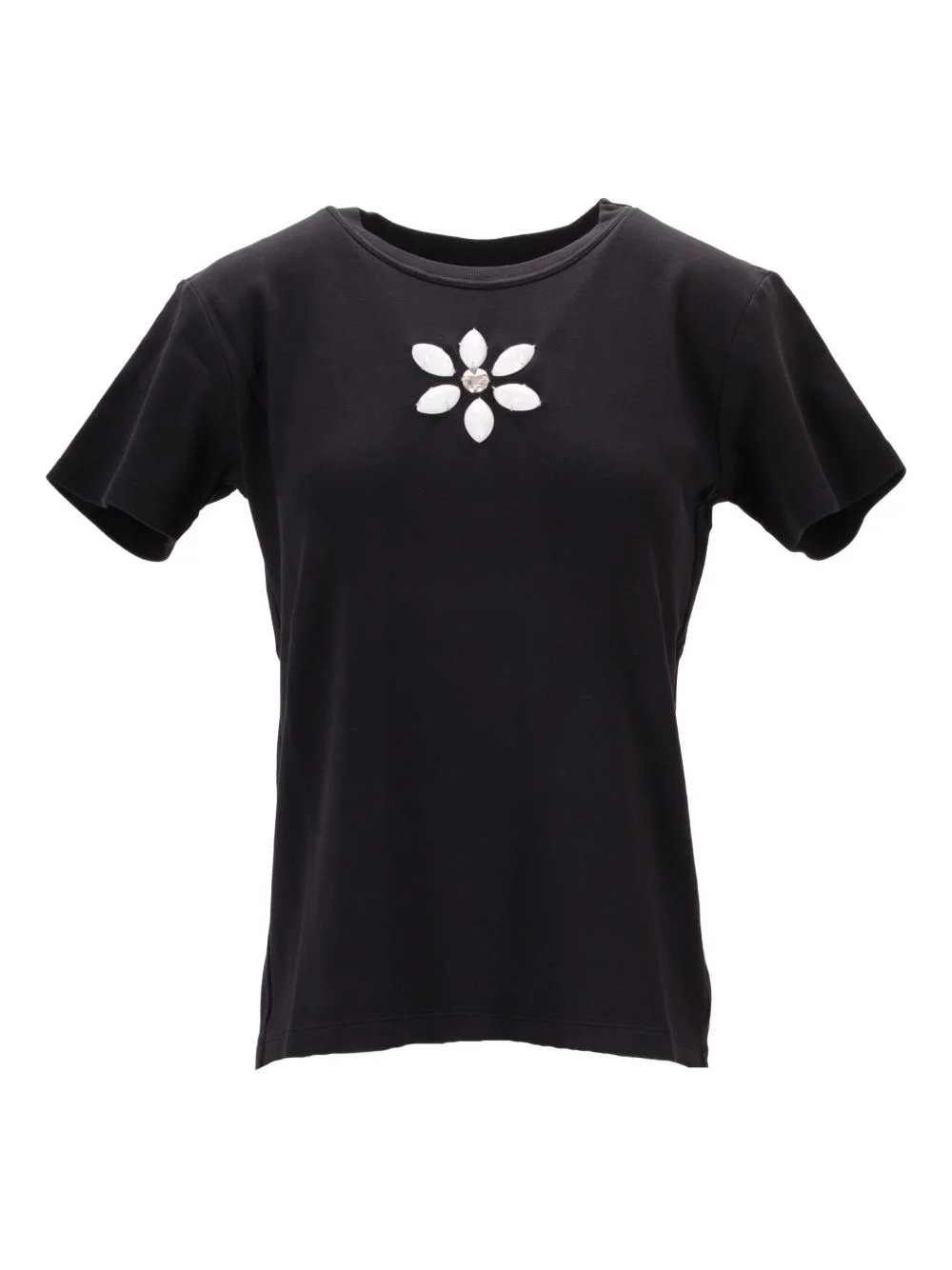 embroidered T-shirt Highlights - Black - Flower embroidery - Round neck - Short sleeves Imported Composition Cotton 100%, Polyester 100%, Polyamide 100% Washing instructions Read Manufacturer Guidelines