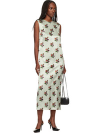 Viscose satin maxi dress. · Floral pattern printed throughout · Round neck · Zip closure at back · Fully lined Supplier color: Mint 100% viscose. Made in Italy 252512F055000