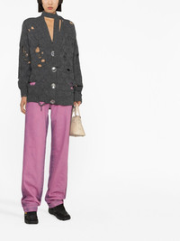 oversized distressed wool cardigan Meryll Rogue brings forward a new take on cosy knitwear for AW22. Crafted in wool, this oversized cardigan embodies a grunge aesthetic through its ripped and distressed finish, with maxi front buttons completing the design. Made in Italy Composition Wool 100%, Zamak 100% SIZE & FIT Model measurements Height 5 ft 10 in(1.78 m) Bust/Chest 29.92 in(76 cm) Hips 34.64 in(88 cm) Waist 23.62 in(60 cm) FittingInformation This piece fits true to size. We recommend you get your regular size Cut for a loose fit Made with a mid-weight fabric Washing instructions Hand Wash