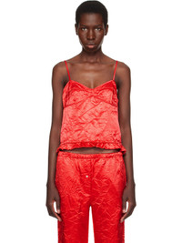 Crinkled nylon- and viscose-blend satin camisole. · Sweetheart neck · Ruffled trim at hem · Zip closure at side seam · Fixed spaghetti straps Supplier color: Red 54% polyamide, 46% viscose. Made in Italy 251512F111002