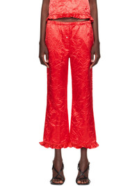 Red Creased Satin Trousers