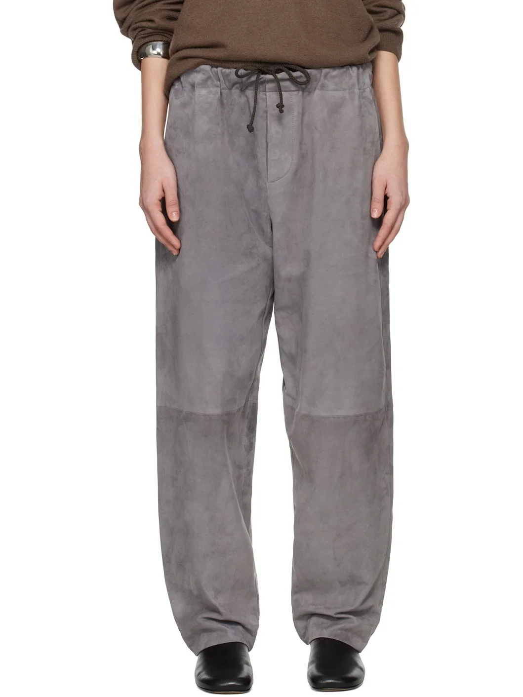 Gray Ed Unlined Drawstring Lamb Suede Trousers