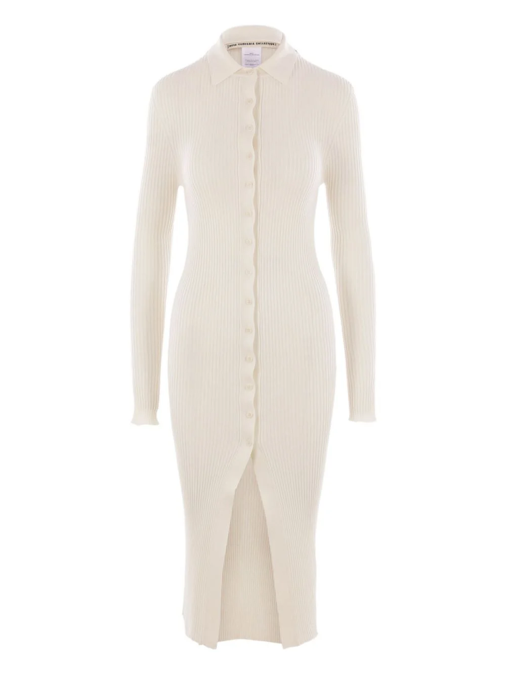rib-knit button midi dress Highlights - Off-white - Rib knit - Long sleeves - Button front - Midi length Made in Italy Composition Silk 100% Washing instructions Read Manufacturer Guidelines
