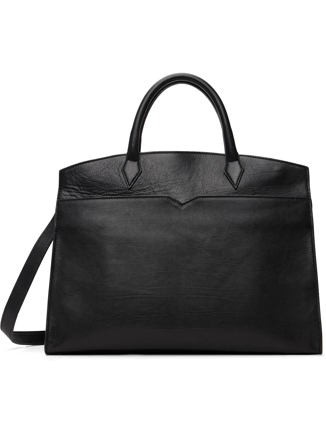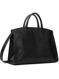 Creased leather top handle bag. · Rolled carry handles · Adjustable and detachable crossbody strap · Bumper studs at base · Zip closure · Zip and patch pocket at interior · Detachable zip pouch · H10" x W14.5" x D4.5" Supplier color: Black Leather. Made in Italy 261270F046000