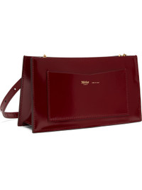 Handcrafted patent calfskin shoulder bag in red. · Adjustable and detachable shoulder strap · Patch pocket and logo stamp at back face · Turn-lock closure · Zip pocket at interior · Suede lining · H4.75" x W9" x D2" Supplier color: Glossy calfskin classic red Calfskin. Made in Italy 251270F048019