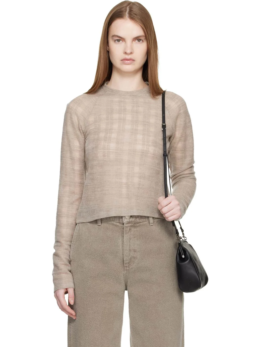 Semi-sheer merino wool- and nylon-blend gauze T-shirt · Check pattern throughout · Crewneck · Raglan sleeves Supplier color: Beige gauze check 67% merino wool, 33% nylon. Made in Portugal 252505F110000