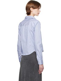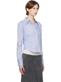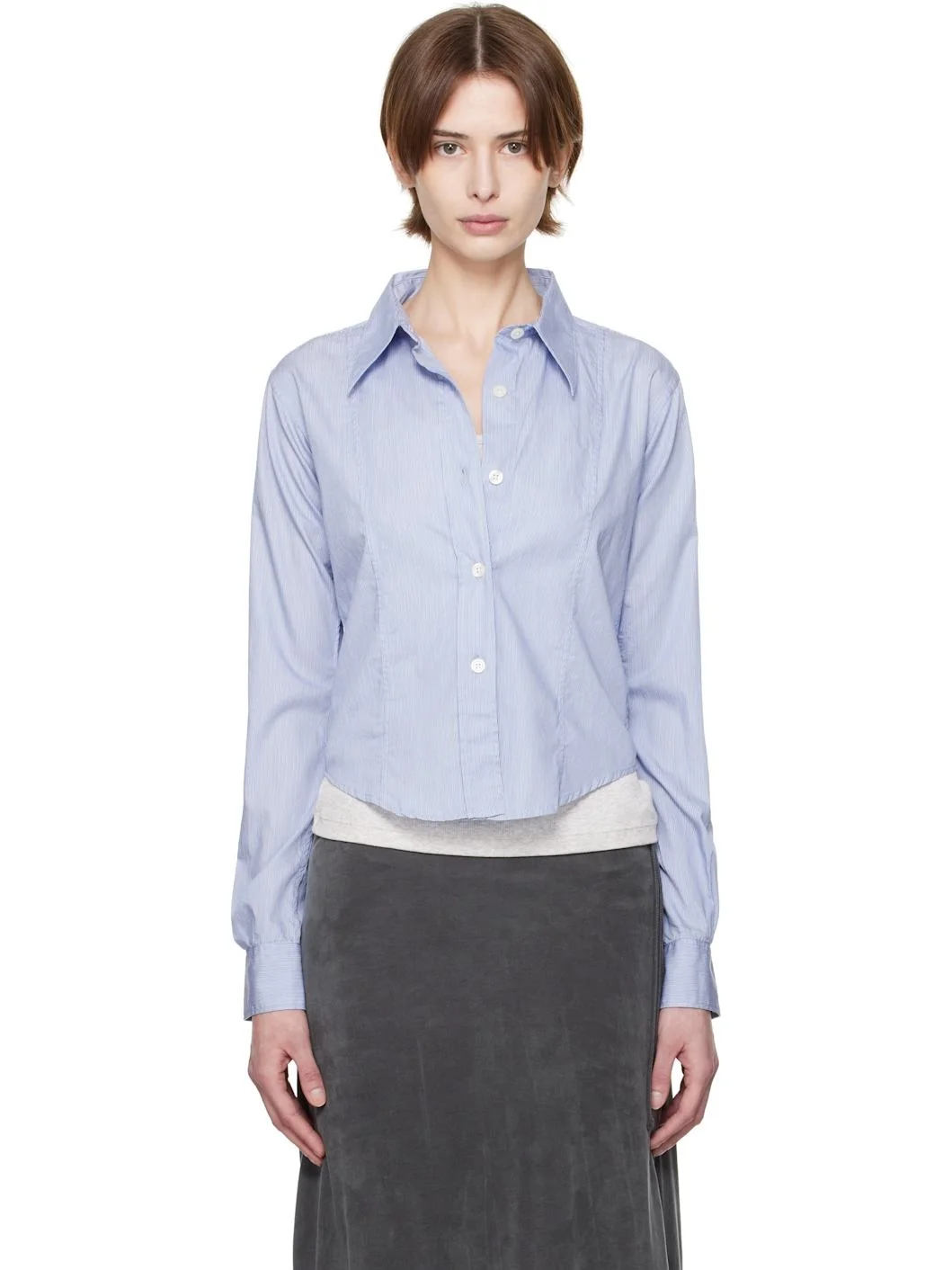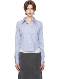 Lightweight deadstock cotton poplin shirt. Stripes throughout. · Garment-washed · Paneled construction · Spread collar · Button closure · Cropped shirttail hem · Single-button barrel cuffs Supplier color: Blue fine stripe 100% cotton. Made in Portugal 251505F109003