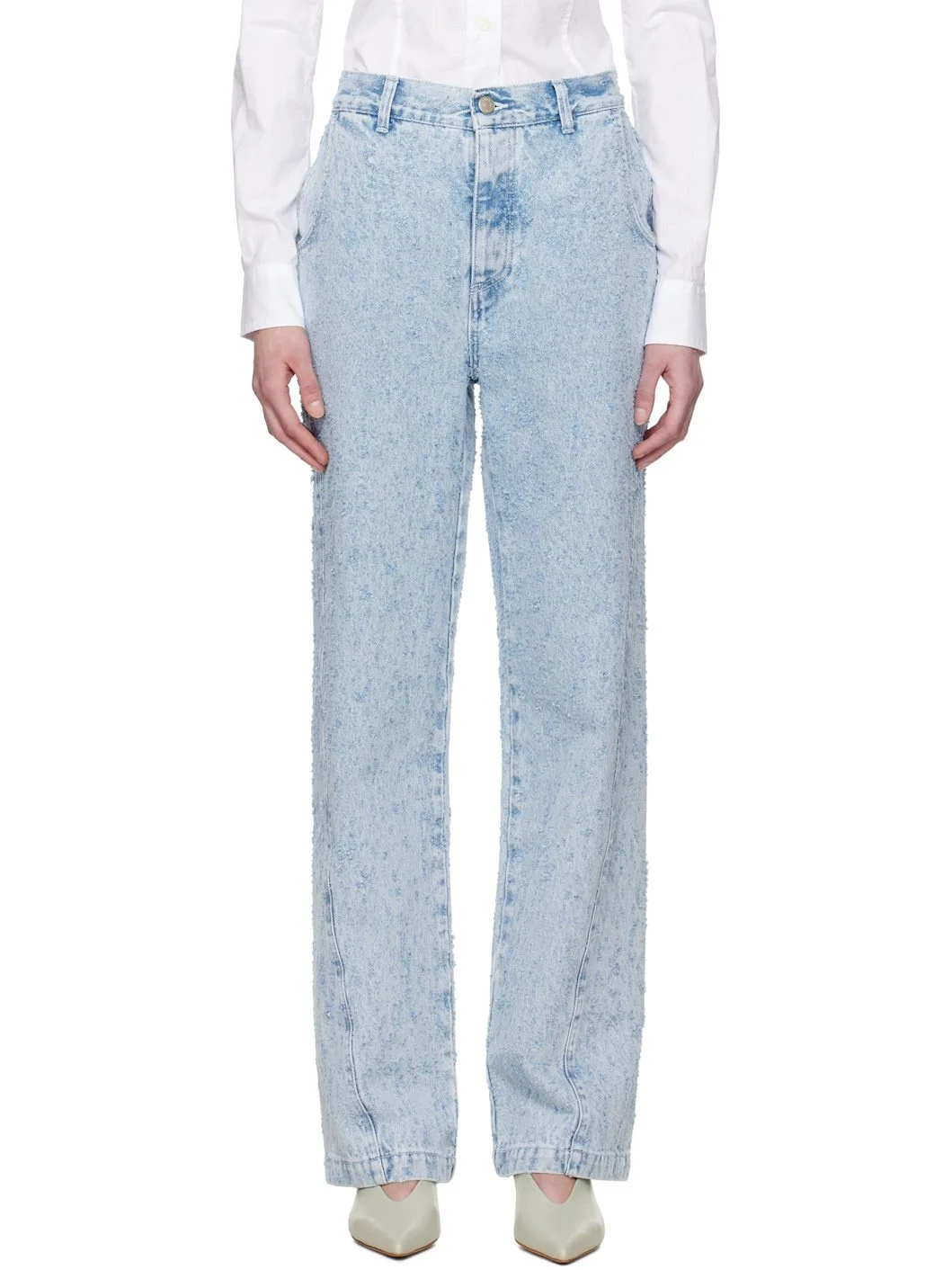 Non-stretch organic cotton denim jeans. Pilling and fading throughout. · Relaxed-fit and straight-leg · Mid-rise · Belt loops · Four-pocket styling · Button fly · Twisted side seams · Logo-engraved silver-tone hardware Supplier color: Light blue punch out 100% organic cotton. Made in Portugal 251505F069001