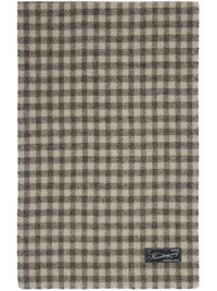 Rectangular double-faced knit wool-blend scarf. · Jacquard check pattern throughout · Logo patch at end · L81" x W15" Supplier color: Grey double faced check 70% wool, 30% polyamide. Made in Italy 252505F028001