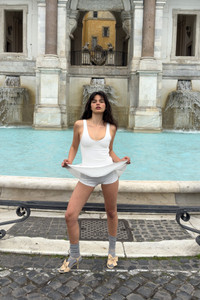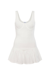 Preorder. Ships June 23. The Alice Dress is here. Features a flattering raceback, bust cups, built-in shorts and a flouncy dropwaist skirt. She's perfect for all your summer adventures. Made with Miaou's snatching BODY fabric and chiffon poplin. 65% Rayon, 30% Nylon, 5% Spandex. Sibilla is 5'9" and wears a size Small. Her measurements are: Bust-34” Waist-26” Hips-38”. Ben is 5'9.5" and wears a size Small. Her measurements are: Bust-32” Waist-25” Hips-35”. Machine Wash Cold. Inside Out Gentle Cycle. With Like Colors. Lay Flat To Dry. Do Not Bleach. Warm Iron If Needed.