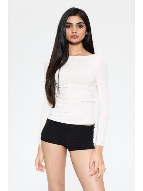 Our bestselling Amelia Top is back in Black and White Polka Dot. Featuring perfect long sleeves, a boatneck, and ultra soft fabric - it's no wonder she's always sold out. Miaou's fan fave fabric, Cotton Jersey - 93% Tencel, 7% Spandex Model is 5'7.5" and wears a size Small. Her measurements are: Bust-31.5” Waist-24” Hips-34.5”. Machine Wash Cold. Inside Out Gentle Cycle. With Like Colors. Lay Flat To Dry. Do Not Bleach. Warm Iron If Needed.