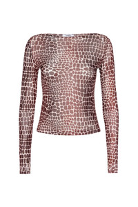 Meet our super soft Amelia Top in Lizard. This semi-sheer, long sleeve fitted tee has a boat neckline and is perfect for everyday wear. In everyone's favorite Miaou fabric - cotton jersey. 93% Tencel, 7% Spandex. Born is 5'9" and wears a size Small. Her measurements are: Bust-29” Waist-26” Hips-37.5” Machine Wash Cold. Inside Out Gentle Cycle. With Like Colors. Lay Flat To Dry. Do Not Bleach. Warm Iron If Needed.