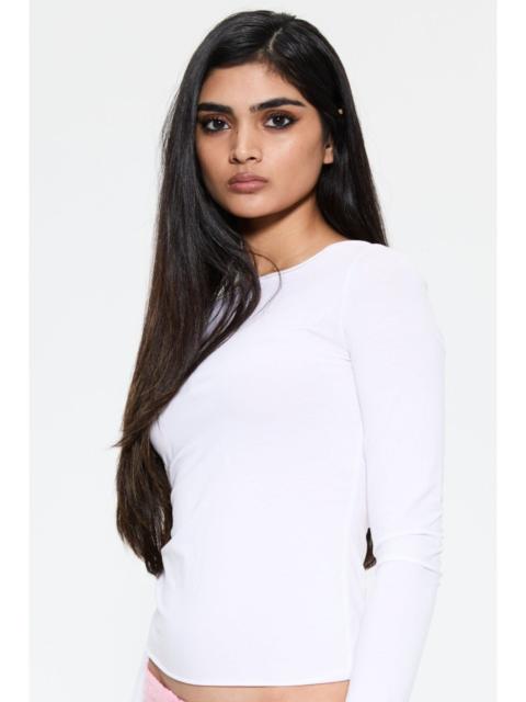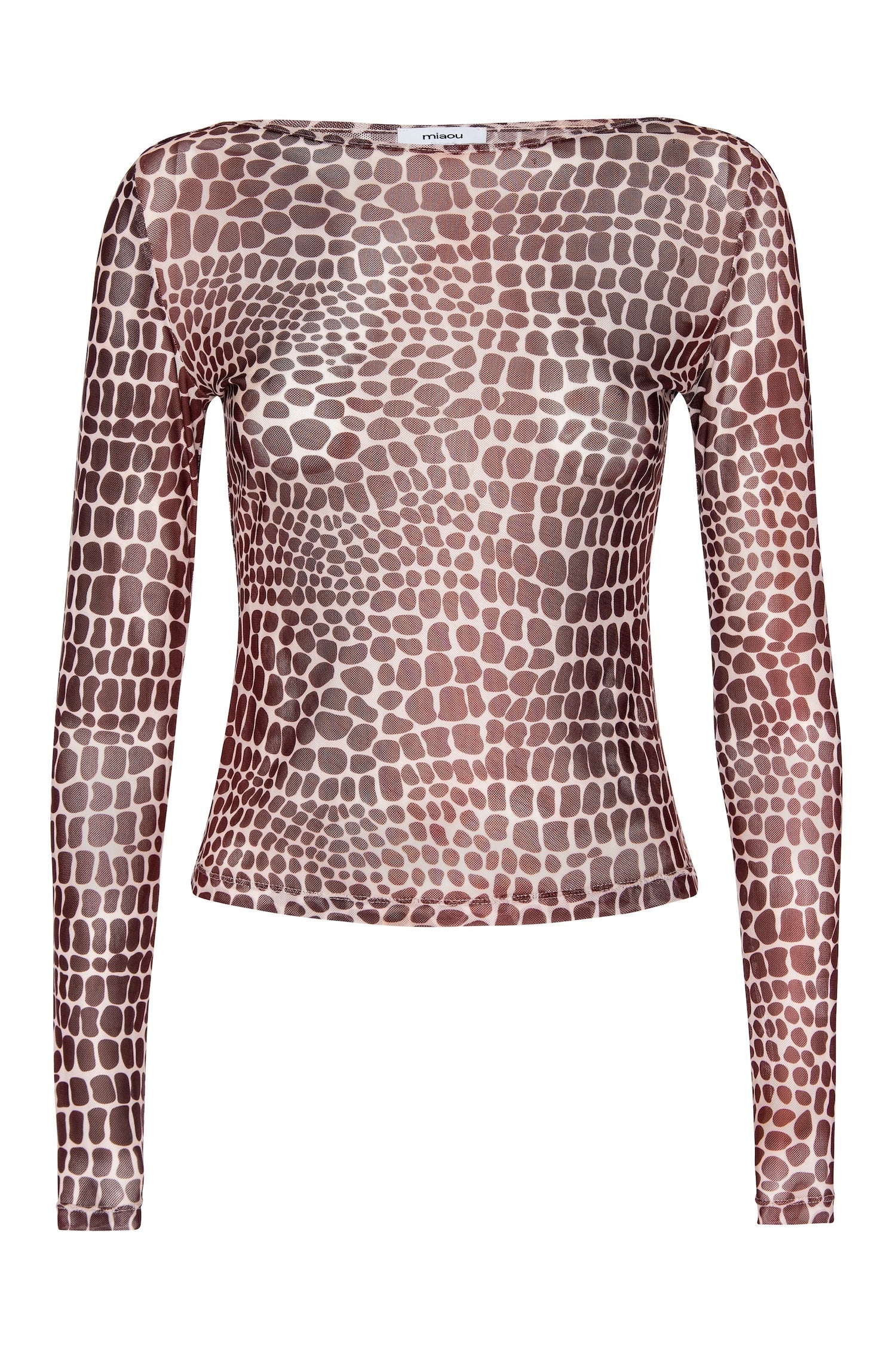 Meet our super soft Amelia Top in Lizard. This semi-sheer, long sleeve fitted tee has a boat neckline and is perfect for everyday wear. In everyone's favorite Miaou fabric - cotton jersey. 93% Tencel, 7% Spandex. Born is 5'9" and wears a size Small. Her measurements are: Bust-29” Waist-26” Hips-37.5” Machine Wash Cold. Inside Out Gentle Cycle. With Like Colors. Lay Flat To Dry. Do Not Bleach. Warm Iron If Needed.