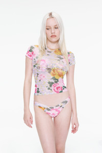 Our latest bikini bottom, the Bambi in Neon Floral. With a ruched front and cheeky back, she's perfect for pairing with our Chateau Miaou collection. Miaou's Metallic Swim - 85% Nylon, 15% Spandex Freya is 5'9" and wears a size Small. Her measurements are: Bust-33” Waist-24” Hips-34.5” Hand Wash Cold. Lay Flat to Dry in Shade.