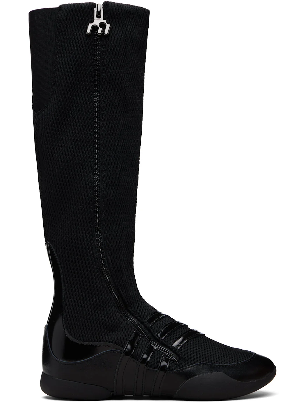 Knee-high mesh and buffed leather boots. · Signature stripes at vamp · Zip closure at side · Elasticized gusset at heel collar · Logo printed at heel counter · Treaded rubber sole Part of the Miaou x adidas Originals collaboration. Supplier color: Core black/Core black/Silver metallic Upper: textile, leather. Sole: rubber. Made in Viet Nam 261224F127000