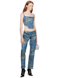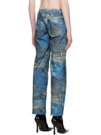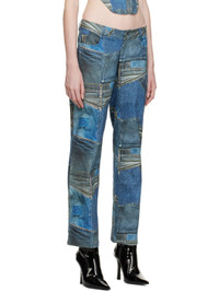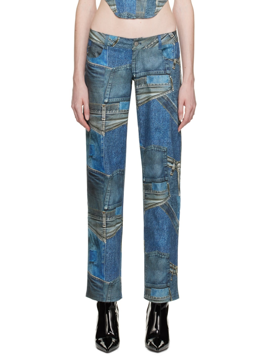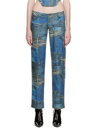 Straight-leg stretch denim trousers. Trompe l'oeil graphic pattern printed throughout. · Low-rise · Belt loops · Five-pocket styling · Zip-fly Supplier color: Denim print