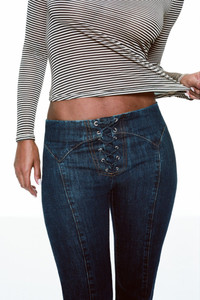 Preorder. The beloved Element Lace-Up Pant, now in your go-to dark wash denim for fall and crafted in durable heavyweight cotton with 3% give. The perfect amount of stretch and structure for a flattering fit and elevated fit. Made in Mexico from the world’s leading sustainable denim manufacturer. Fabric: 97% Cotton, 2% Elasterell-P, 1% Spandex. Jasmine is 5'9" and wears a size S. Her measurements are: Bust-34” Waist-23.5” Hips-34”. Hand Wash Cold Only. Inside Out Gentle Cycle. Lay Flat To Dry. Do Not Bleach. Do Not Iron.