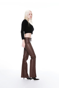 The Element pant in vegan leather features a front lace up closure, slits at each hem, and detailed seams. Pair her with an iconic vegan or real leather Corset. As seen on Rihanna. 100% Vegan PU Leatherr Freya is 5'9" and wears a size Small. Her measurements are: Bust-33” Waist-24” Hips-34.5” Green Dry Clean Only.