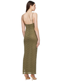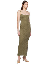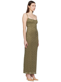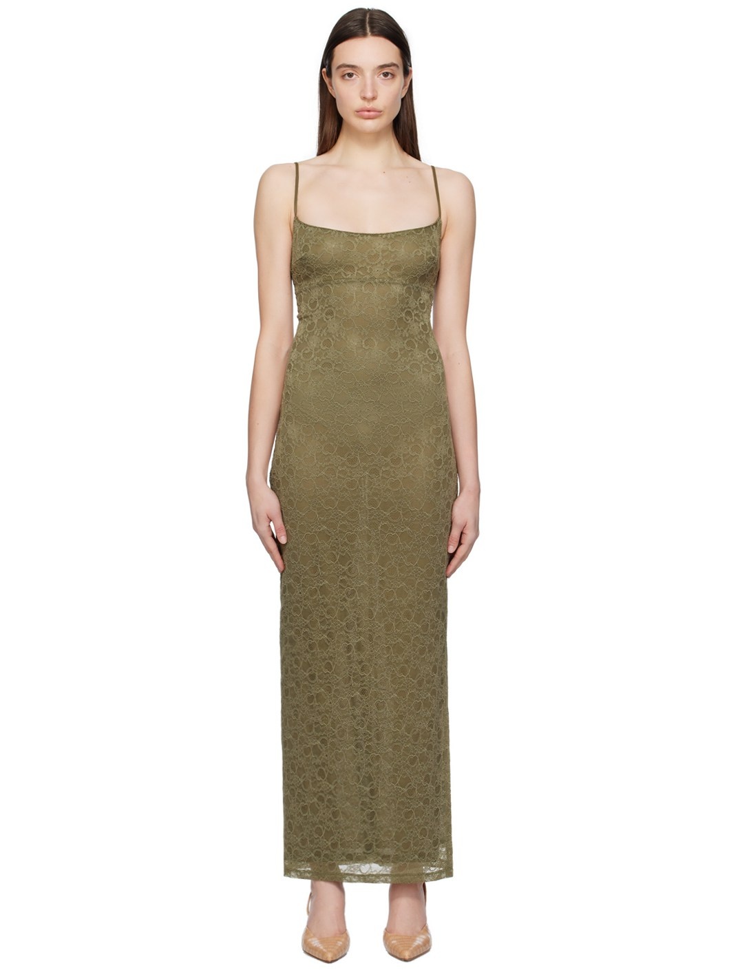 Stretch nylon lace dress. · Scoop neck · Darts at bust · Vent at side seam · Adjustable spaghetti straps · Full mesh lining Supplier color: Hunter
