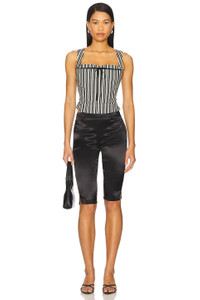 - 54% rayon 42% viscose 4% spandex - Dry clean only - Hidden side seam zipper closure - Front belt loops - Side hem slits - Midweight high-shine jersey fabric - Item not sold as set.13" at the knee and 13" at the leg opening - Revolve Style No. MAOU-WP63 - Manufacturer Style No. 1014SS5BLK