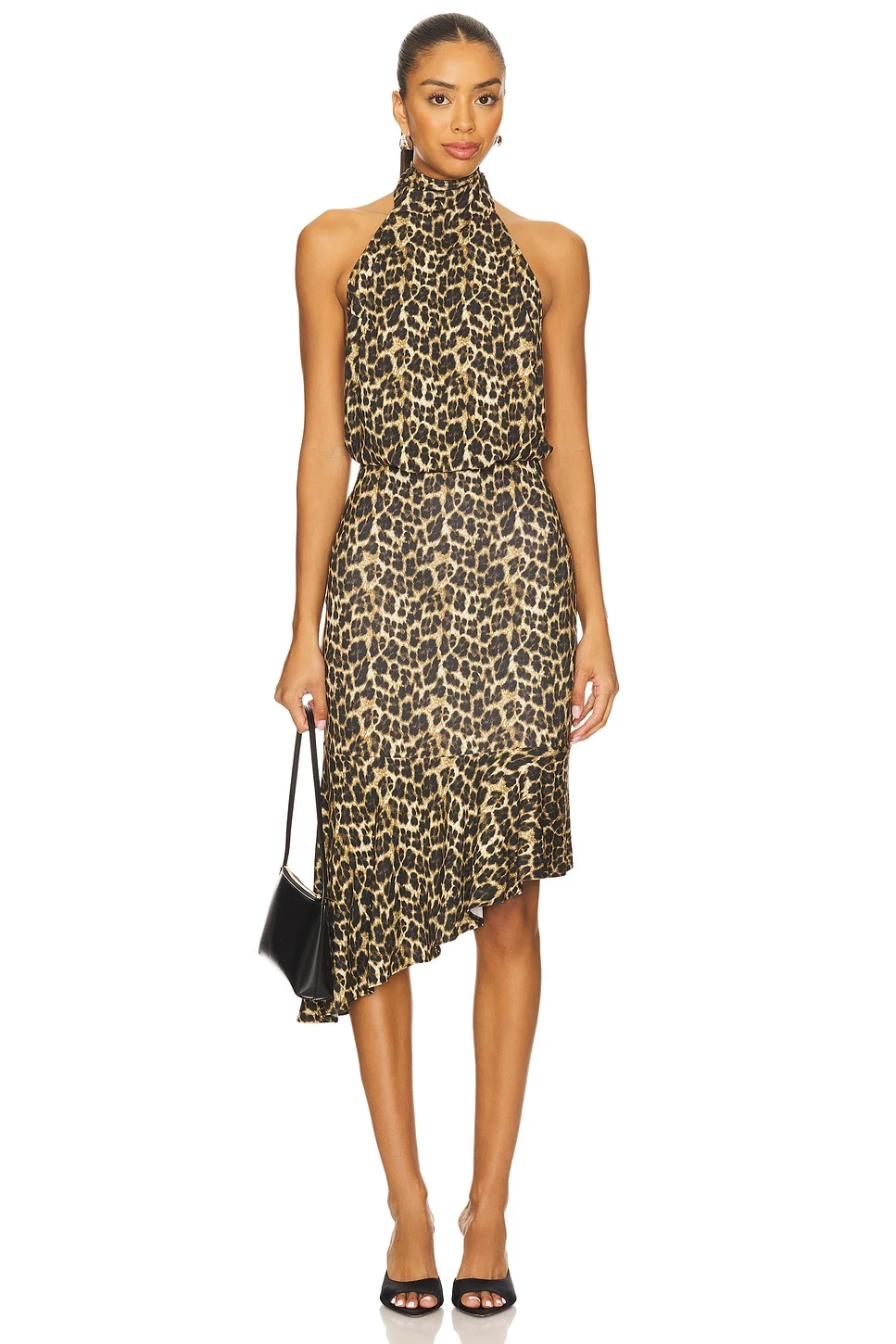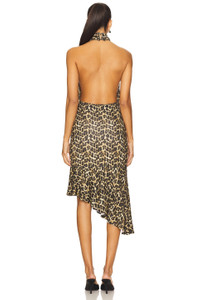 - 95% rayon 5% spandex - Machine wash - Fully lined - Button loop closure at halter - Backless design - Asymmetric hem - Midweight jersey fabric - Revolve Style No. MAOU-WD91 - Manufacturer Style No. 5028HJBLEO