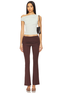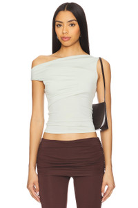 - 95% polyester 5% spandex - Made in China - Machine wash cold - Lightweight stretch jersey fabric - Ruched design - Scoop back - Partial off-shoulder styling - Revolve Style No. MAOU-WS348 - Manufacturer Style No. 7114VISSAG