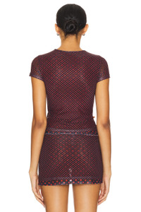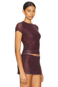 - 92% polyester 8% spandex - Made in China - Machine wash - Lining with larger polka dots - Mesh fabric - Revolve Style No. MAOU-WS302 - Manufacturer Style No. 7184PM2BPD