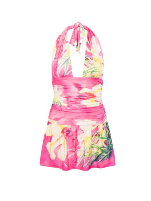 The Natalia is our newest and most perfect mini dress. She features a tie-halter, waist ruching, and a flared, flowy mini skirt with built-in shorts. Perfect for festival season. Miaou's Slinky Jersey: 95% Polyester, 5% Spandex Alexa wears a size XS. Her measurements are: Bust 30", Waist 25.5", Hips 35". Machine Wash Cold. Inside Out Gentle Cycle. With Like Colors. Lay Flat To Dry. Do Not Bleach. Warm Iron If Needed. Model is wearing size Small.