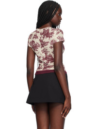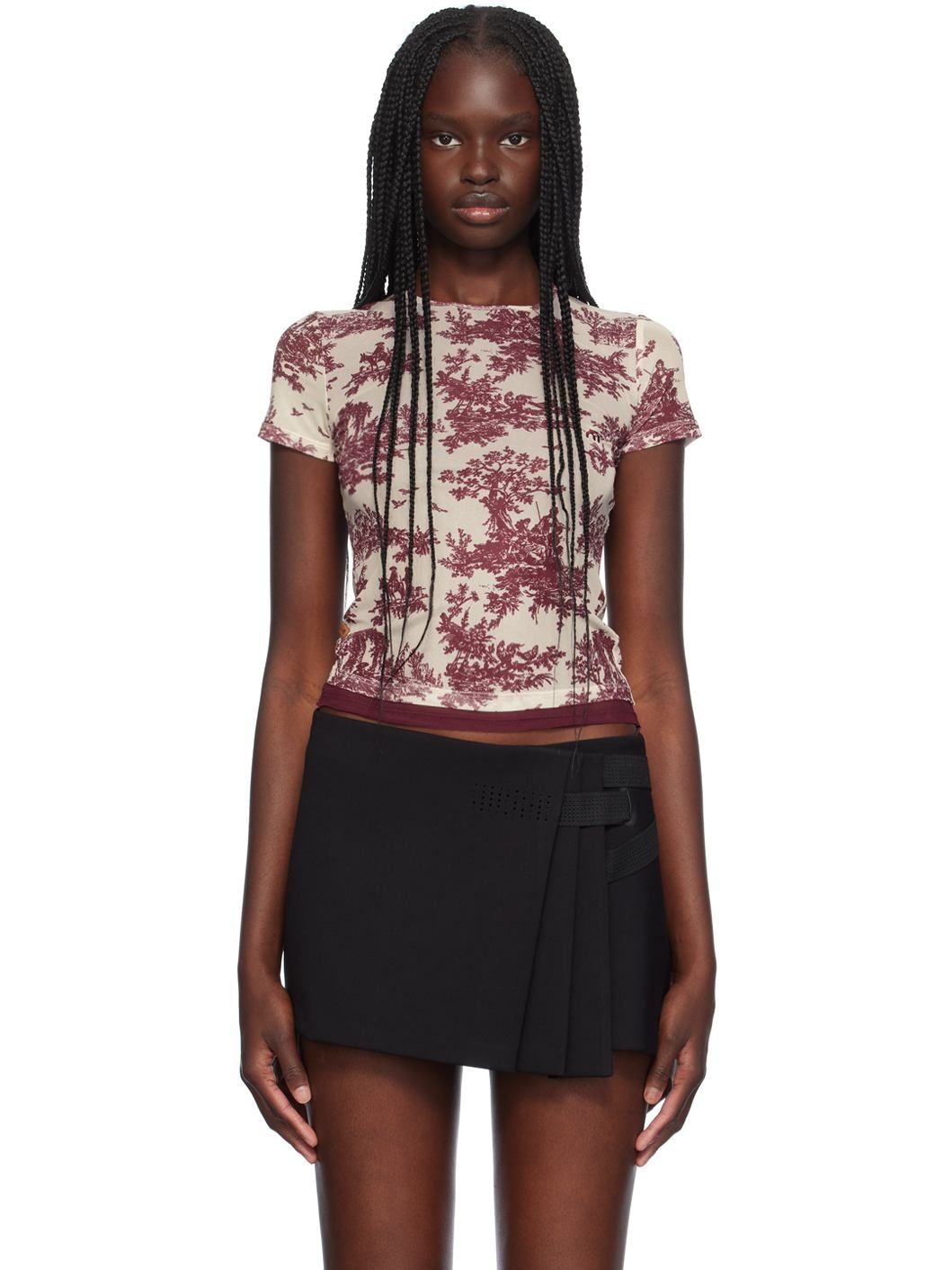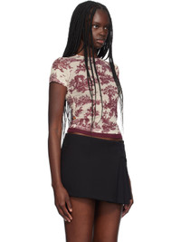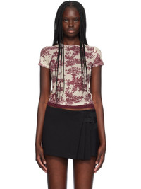 Slim-fit lightweight deadstock stretch polyester mesh T-shirt. Graphic pattern printed throughout. · Crewneck · Logo embroidered at chest · Fully lined Supplier color: Maroon toile 92% polyester, 8% spandex. Made in China 242224F110004