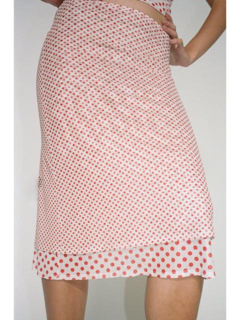 Our low-rise midi Maria Skirt returns in polka dot. She features double layered mesh and hugs your curves in all the right places. Pair with the polka dot Cam or a corset. Made with Miaou mesh: 92% Polyester, 8% Spandex Model wears a size Small. Her measurements are: Bust-32” Waist-25” Hips-34”. Green Dry Clean Only. Do Not Machine Wash.