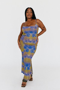 OG Miaou Mudd print! Maxi dress with a side slit and mesh-lining from our Pre-Fall 2022 Collection. Made with Miaou's mesh.