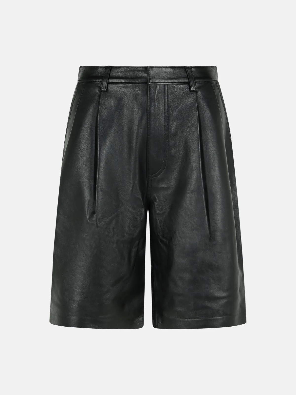 BLACK PLEATED LEATHER BERMUDA SHORTS
