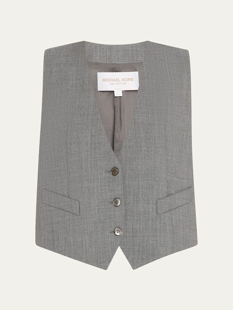 Single-Breasted Wool-Stretch Crop Vest