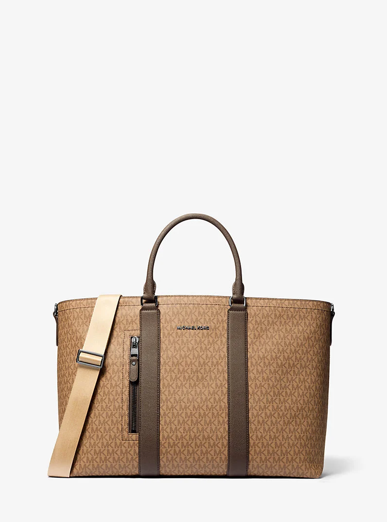 Elevate your city breaks and vacations with the Hudson tote bag. Crafted from Signature logo-print canvas, the timeless design features an array of pockets for keeping your travel essentials securely stowed—including your laptop. Slip the bag onto your carryon suitcase at the airport. - Tote bag - Logo-print canvas - 89.4% coated canvas/9.6% polyester/1% polyurethane - Trim: 90% coated canvas/9% polyester/1% polyurethane - Gunmetal hardware - 12.9”W X 19.6”H X 7.8”D - Handle drop: 5.5" - Adjustable strap: 5.5"-13" - Exterior details: front zip pocket, trolley sleeve - Interior details: front zip pocket, 2 slip pockets, back padded laptop slip pocket - Lining: 100% polyester - Zip fastening - Dust bag not included - Imported - Style # 33F5LHDT4B