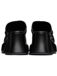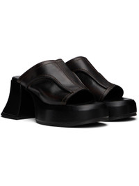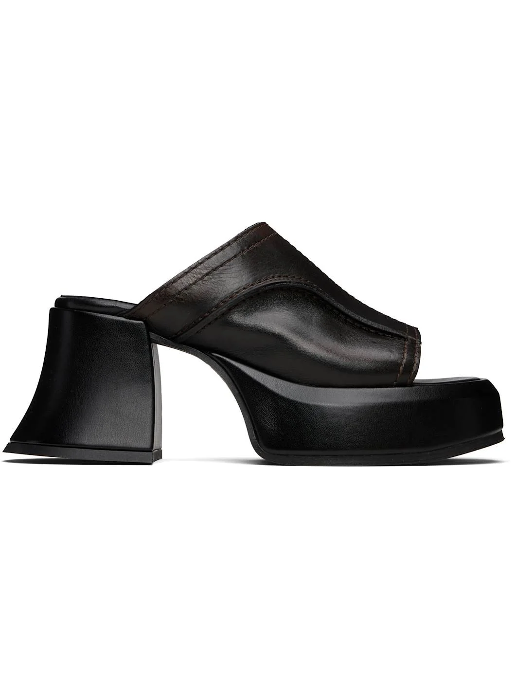 Polished leather mules. · Open toe · Piping at vamp · Concealed elasticized gusset · Logo stamp at padded footbed · Covered platform midsole and block heel · Rubber sole · Platform: H1.75" · Heel: H3" Supplier color: New brown Upper: leather. Sole: leather, rubber. Made in Portugal 251877F125008