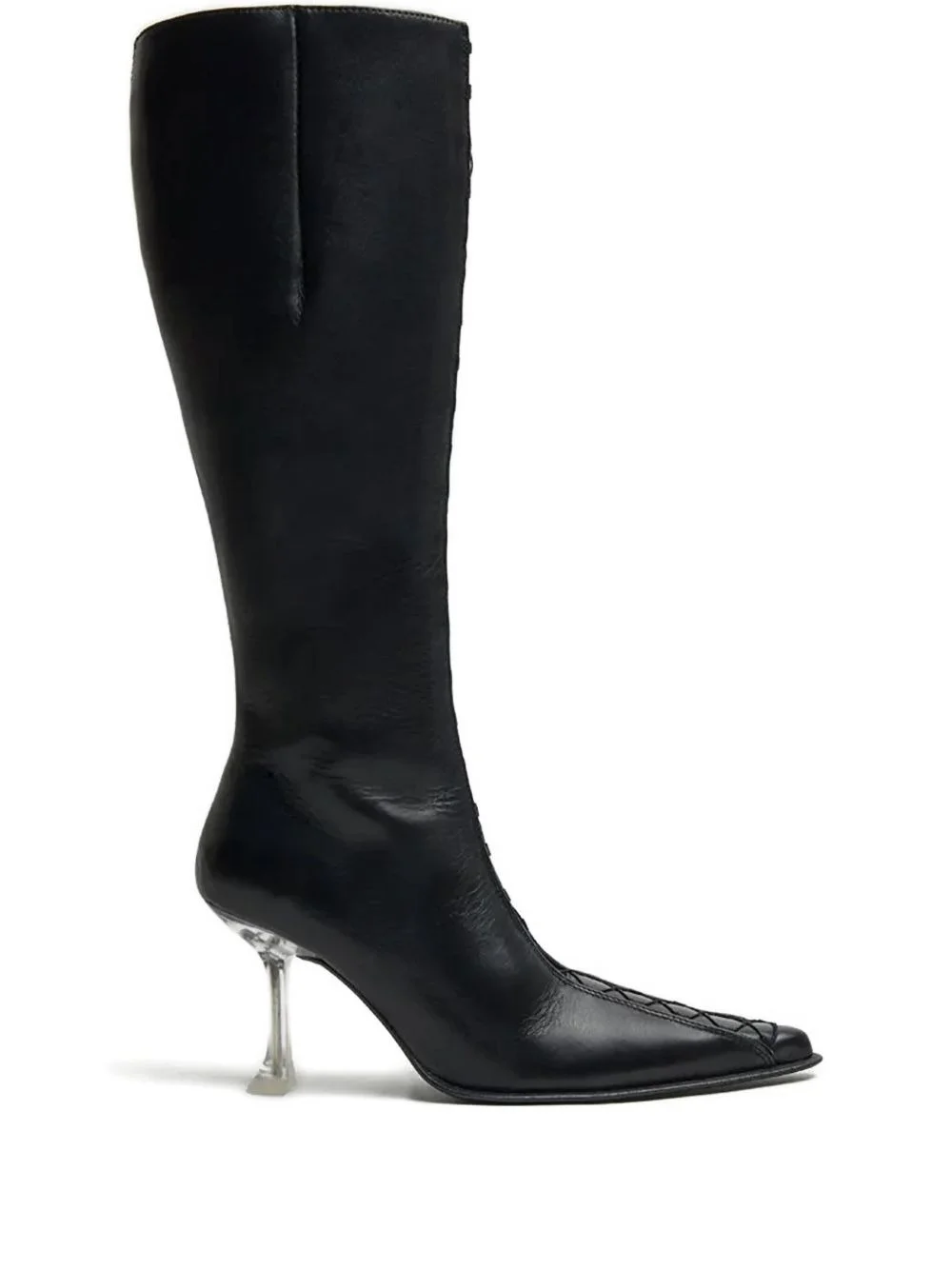 90mm Aline boots Highlights - Black - Cal-leather - Pointed toe - Stiletto heel Imported Composition Sole: Calf Leather 100% Outer: Calf Leather 100% Lining: Calf Leather 100% SIZE & FIT Measurement HEEL 3.54 in(9 cm)