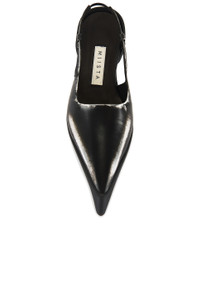 - Patent leather upper with rubber sole - Sling-back styling - Leather footbed and lining - Pointed toe - Approx 50mm/ 2 inch heel - Revolve Style No. MIIT-WZ27 - Manufacturer Style No. MI_5708