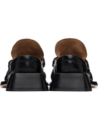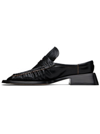 Polished leather loafers in black. · Gathering at square moc toe · Strap at vamp · Low collar · Logo patch at padded leather footbed · Stacked leather block heel with rubber injection · Nubuck sole with rubber injection · Heel: H1.5" Supplier color: Black Upper: leather. Sole: leather. Made in Spain 251877F122006