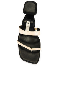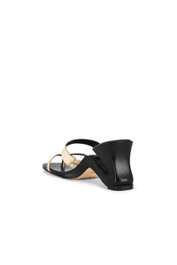 - Patent leather upper with leather sole - Slip-on styling - Leather footbed and lining - Thong design - Angled square toe with structural wedge - Approx 70mm/ 2.75 inch wedge - Revolve Style No. MIIT-WZ33 - Manufacturer Style No. MI_5698