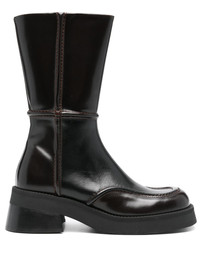 55mm Inee boots Highlights - Cedar brown/black - Calf leather - Smooth grain - Side zip fastening - 55mm block heel - Bonded seams - Round toe - Mid-calf length - Branded leather insole - Rubber sole Imported Composition Outer: Calf Leather 100% Sole: Rubber 100% Lining: Rubber 100%, Calf Leather 100% SIZE & FIT Measurement CIRCUMFERENCE 12.59 in(32 cm) HEEL 2.16 in(5.5 cm) HEIGHT 9.44 in(24 cm) Sole height 0.98 in(2.5 cm)