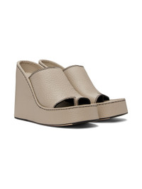 Handcrafted grained leather slip-on heeled sandals in taupe. · Open square toe · Thong-style strap at vamp · Memory foam footbed · Covered wedge heel with rubber injection · Leather outsole with rubber injection · Contrast stiching in black · Heel: H4 in Supplier color: White Upper: leather. Sole: leather, rubber. Made in Spain 231877F125016