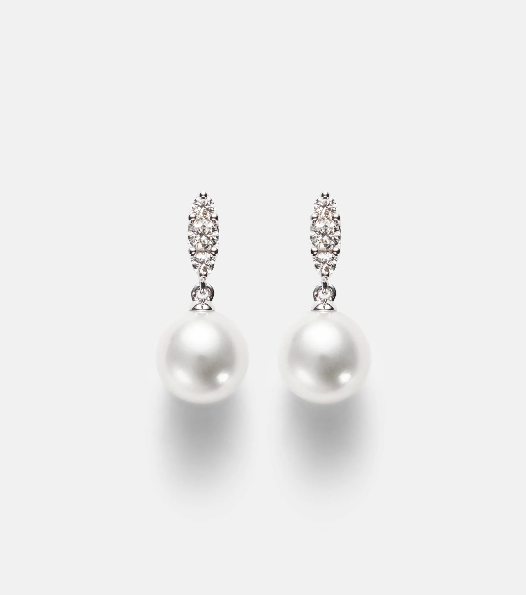 18kt white gold drop earrings with Akoya pearls and diamonds