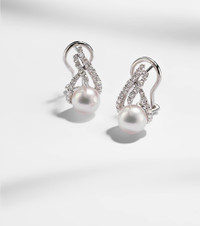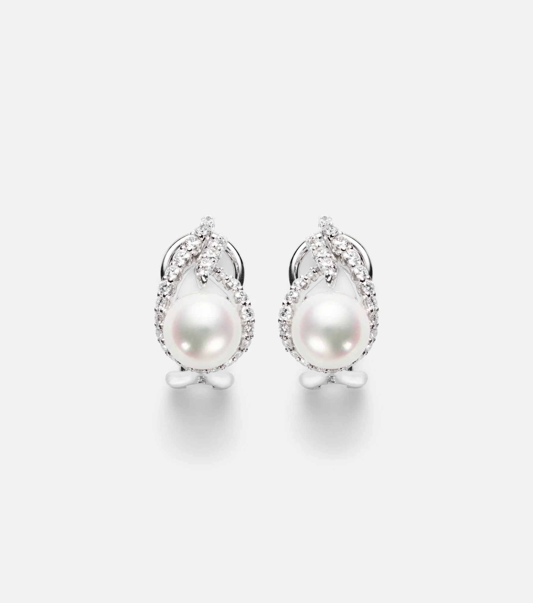 Mikimoto fuses traditional Japanese techniques and radiant gemstones to create jewelry that's truly unique. Made from gleaming 18kt white gold with meticulous attention to detail, these earrings boast precious akoya pearls surrounded by a series of dazzling diamonds. Product Details - Material: 18kt white gold (750/1000) - Made in the USA - Item color: silver - Color: silver - Pearl I: Akoya cultivated - Stone I: 62 diamonds, 0.64ctw - For pierced ears - diamond - Item number: P01103438 Size & Fit - Length 15mm-0.6" - Max. width 9mm-0.35"
