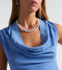 Mikimoto balances European manufacturing techniques and traditional Japanese metalwork, resulting in a truly unique DNA. Crafted from 18kt white gold, this statement necklace is decorated with dazzling Akoya pearls and striking 5.5ctw sapphires. Product Details - Material: 18kt white gold (750/1000) - Made in the USA - Item color: white gold - Color: white - Pearl I: Akoya cultivated - Stone I: 5.5 sapphires - Item number: P01103423 Size & Fit - Length when open 44,5cm-17.5" - Min. width 7mm-0.3" - Max. width 15mm-0.6" - Pendant length 12mm-0.45" - Pendant width 4mm-0.15"